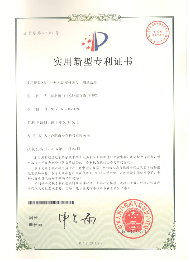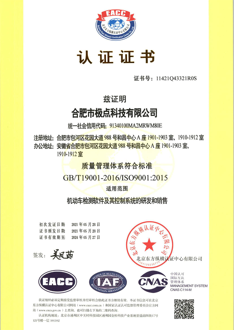 合肥市極點(diǎn)科技有限公司位于科教名城合肥市。是一家專注于機(jī)動(dòng)車檢測(cè)系統(tǒng)的研發(fā)與銷售的高科技公司。產(chǎn)品涵蓋機(jī)動(dòng)車檢測(cè)設(shè)備、圖像識(shí)別、人工智能、環(huán)保檢測(cè)、工業(yè)自動(dòng)化等方面,廣泛應(yīng)用于公安、環(huán)保、交通、教育、汽車生產(chǎn)與維護(hù)等領(lǐng)域。公司產(chǎn)品擁有多項(xiàng)發(fā)明專利和實(shí)用新型專利以及數(shù)十項(xiàng)軟件著作權(quán)。